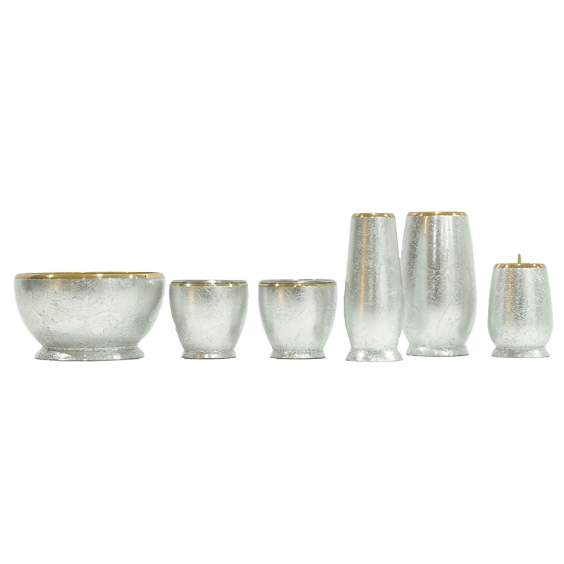 銀箔のシワを模様に見えるよう残し表面をクリアー加工した、純銀を活かした高級感のある美しさを生み出すデザイン。