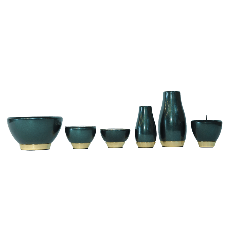 グリーンとゴールドの組み合わせがマッチしており、丸みを帯びたグリーン色とゴールド色でスタイリッシュで洗練されたな雰囲気を演出します。ウォールナットのあたたかい色の仏壇や、タモやオーク、桜などの明るい仏壇にもよく合います。