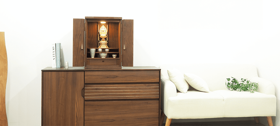広島 府中からは無垢材ならではの温もりある質感とデザインにこだわったモダン仏壇をお届けします。