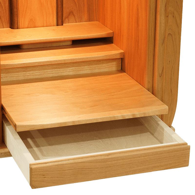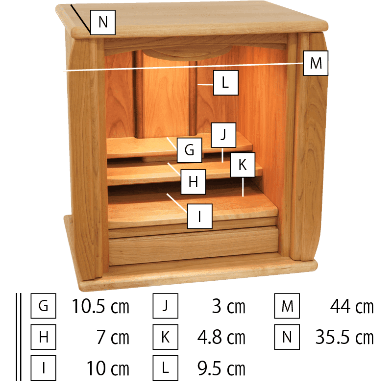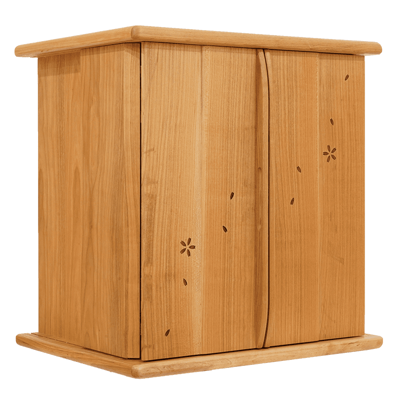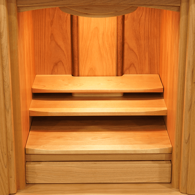 山桜材の美しい扉に桜の模様が入った可愛らしいデザインで祈る人の心を癒します。格納式の扉なので省スペースで設置でき、木の温もりを感じられる確かな品質の日本製仏壇です。