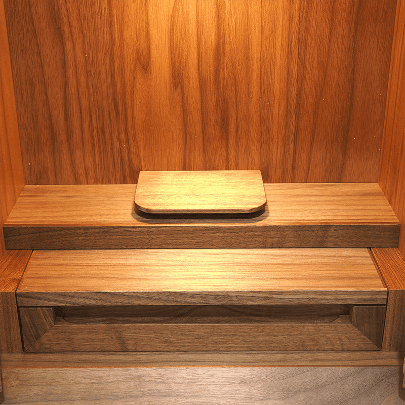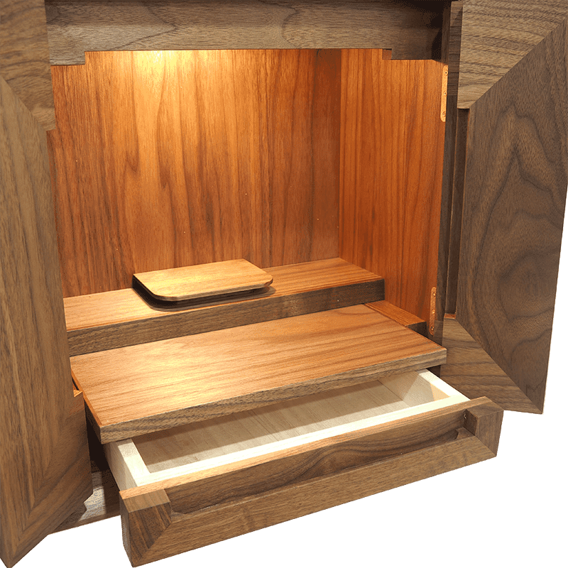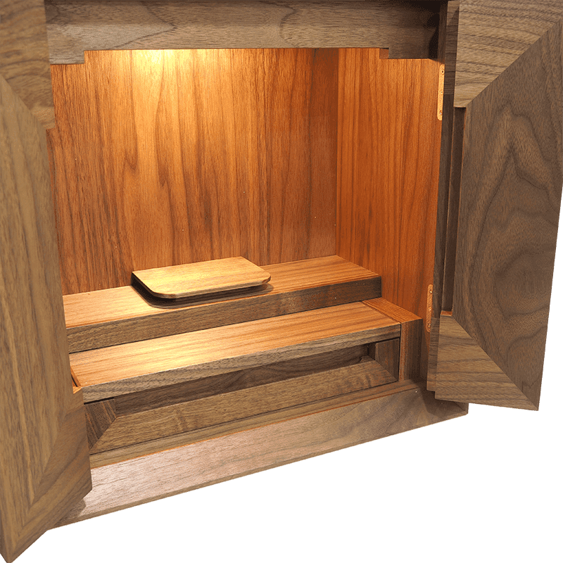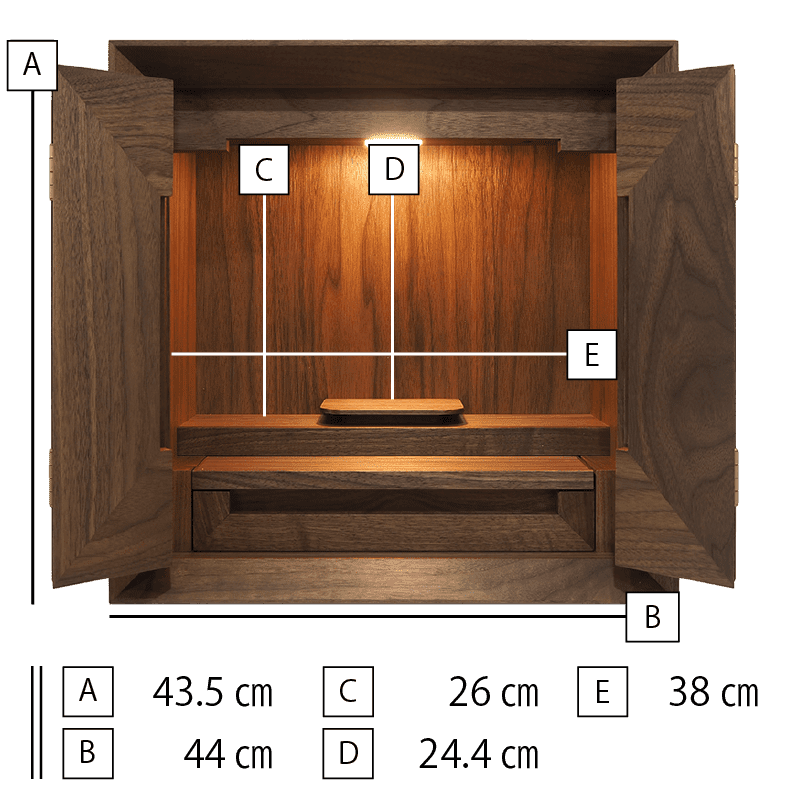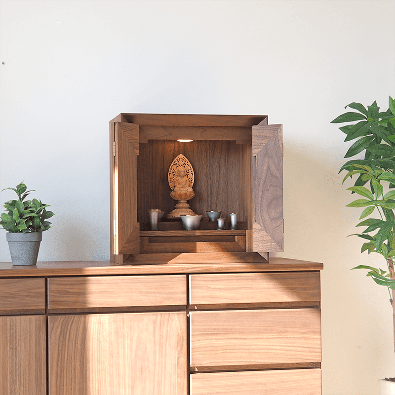高級材として知られる、ウォールナットの無垢材をふんだんに使ったデザイン性の高いコンパクト仏壇を製作しております。