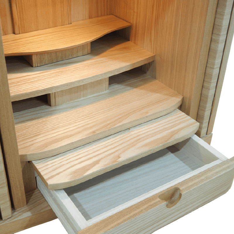 人気のSweetの扉がスライドできるようになって姉妹基種として登場。扉が押し込み式のスライド扉となっていますので限られたスペースにも設置ができ扉が邪魔になりません。扉を開いて使用することも可能なので、ライフスタイルやお部屋のイメージに合わせて設置ができます。色はあたたかな印象のウォールナットと明るい色合いでお部屋を彩るライト色のタモがございます。