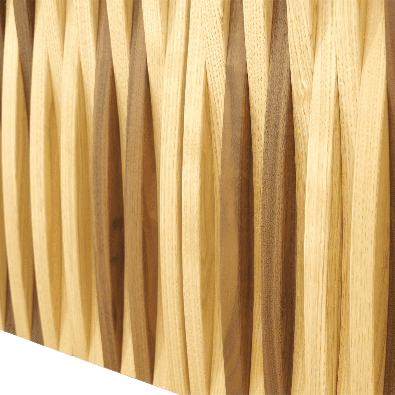 ◇美しい木目を活かすため高度な突板貼りの技術。