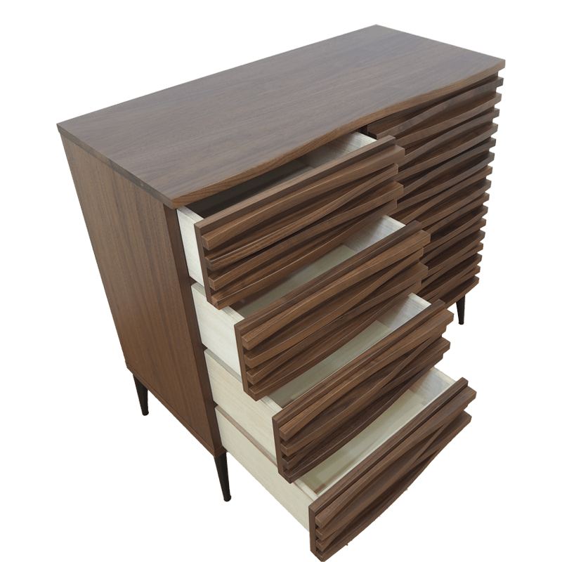 優美な曲線の連なりによって形成された表情は、大河の水面や大木の樹皮など雄大な自然を連想させてくれます。個性的で唯一無二のデザインです。リビングルームはもちろん、寝室などでも。
