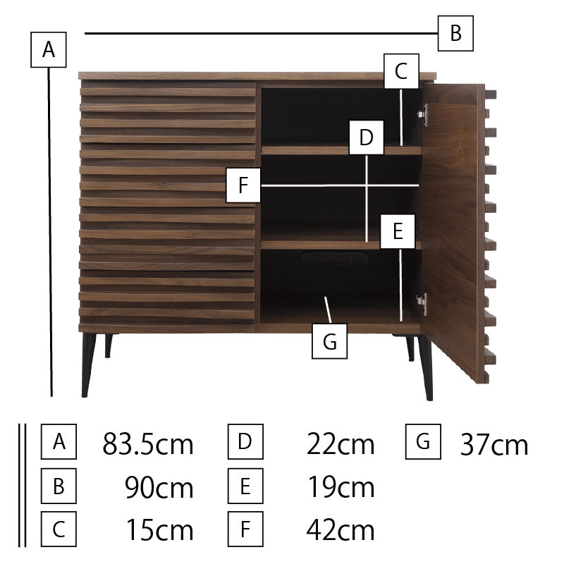 サイズ | 高さ 83.7㎝ 台幅 90.4㎝ 奥行 43.4㎝ |