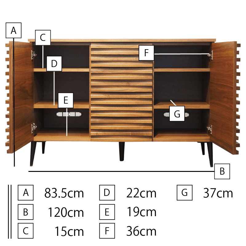 | サイズ | 高さ 83.5㎝ 台幅 120㎝ 奥行 43.3㎝ |