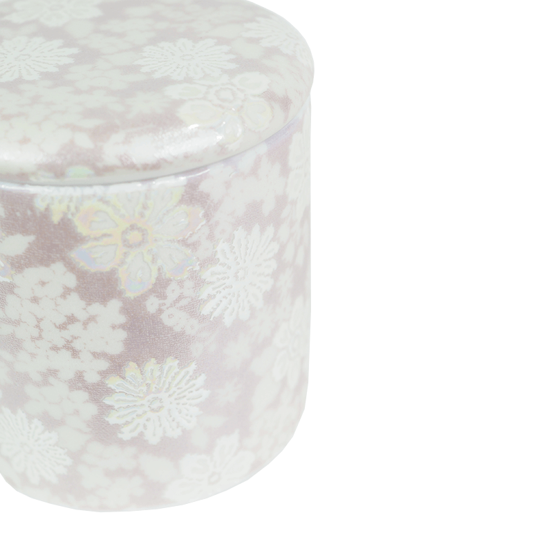 結晶をモチーフにした模様が虹色に輝く骨壺「華結晶」です。蓋にはパッキンがついており、万が一倒れても大切なお骨がこぼれない構造になっております。 愛知県瀬戸市の職人が一点一点丁寧に焼き上げた、品質にこだわった国産ミニ骨壷です。