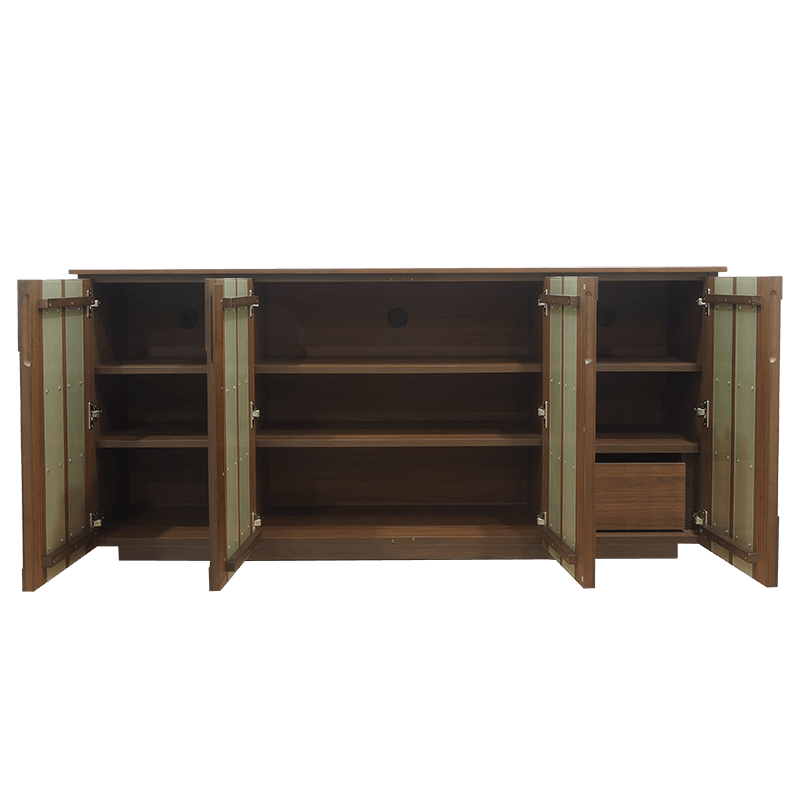 厚みの異なる無垢材をランダムに組み合わせたモダンなデザインのサイドボード。深みのあるウォールナットの色合いが高級感を演出します。抜群の収納力で仏具や書類の収納など幅広い用途でお使いただけます。