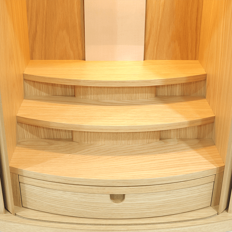 雰囲気のある天然杢とスタイリッシュなスリット巻戸でデザイン性はもちろん使いやすさ・素材・にこだわったお仏壇。