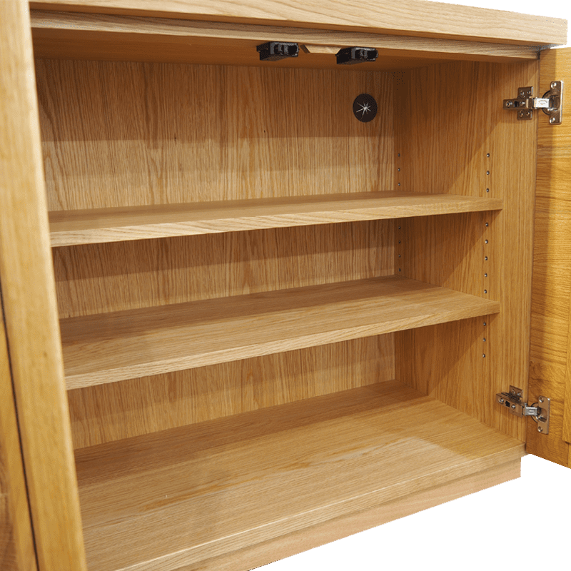 天然木無垢材を凹凸で立体的に組み合わせることで、光があたることで生まれる陰影により木目感がより際立ち、ワイルドな表情に。プッシュ式のレールを採用することで、取っ手のないすっきりとしたデザインと使い勝手のよい機能性を実現しています。厚みのある天然木の無垢材を大胆に使用することで、木が本来持つ節や木目が活き、より深みのある表情に仕上がっています。