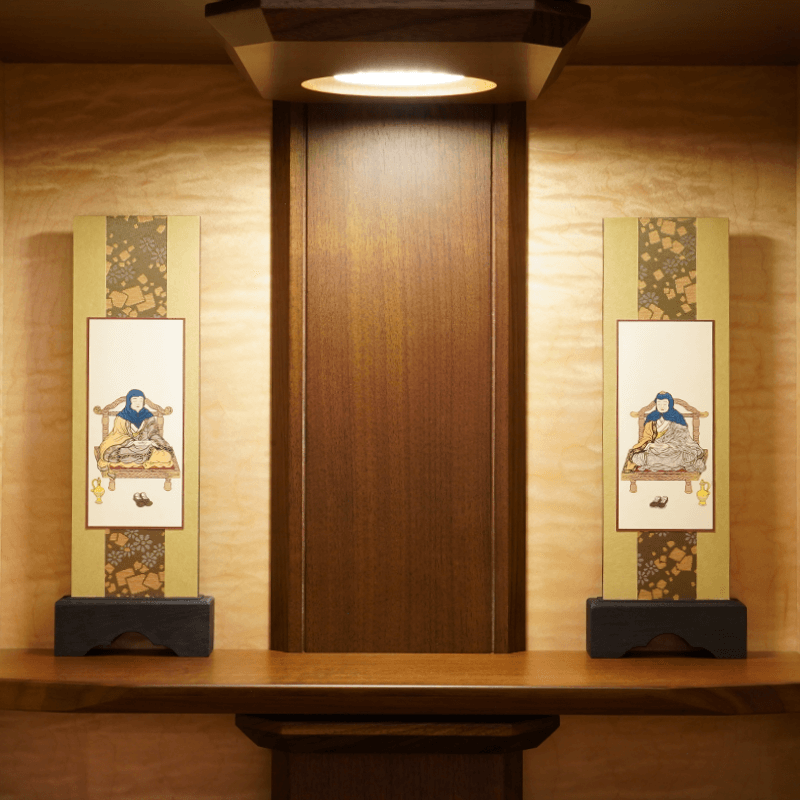 モダンでありながら和のティストを入れた上品なデザインは、どのようなお仏壇にも合う人気のスタンド軸。しっかりとした土台で安定感がありながら、省スペースで設置可能です。サイズは2種類からお選びいただけます。